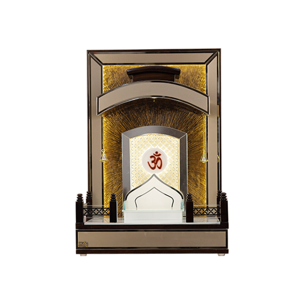 Modern Teak Wood Compact Mandir for Home with Radiant LED Backlight