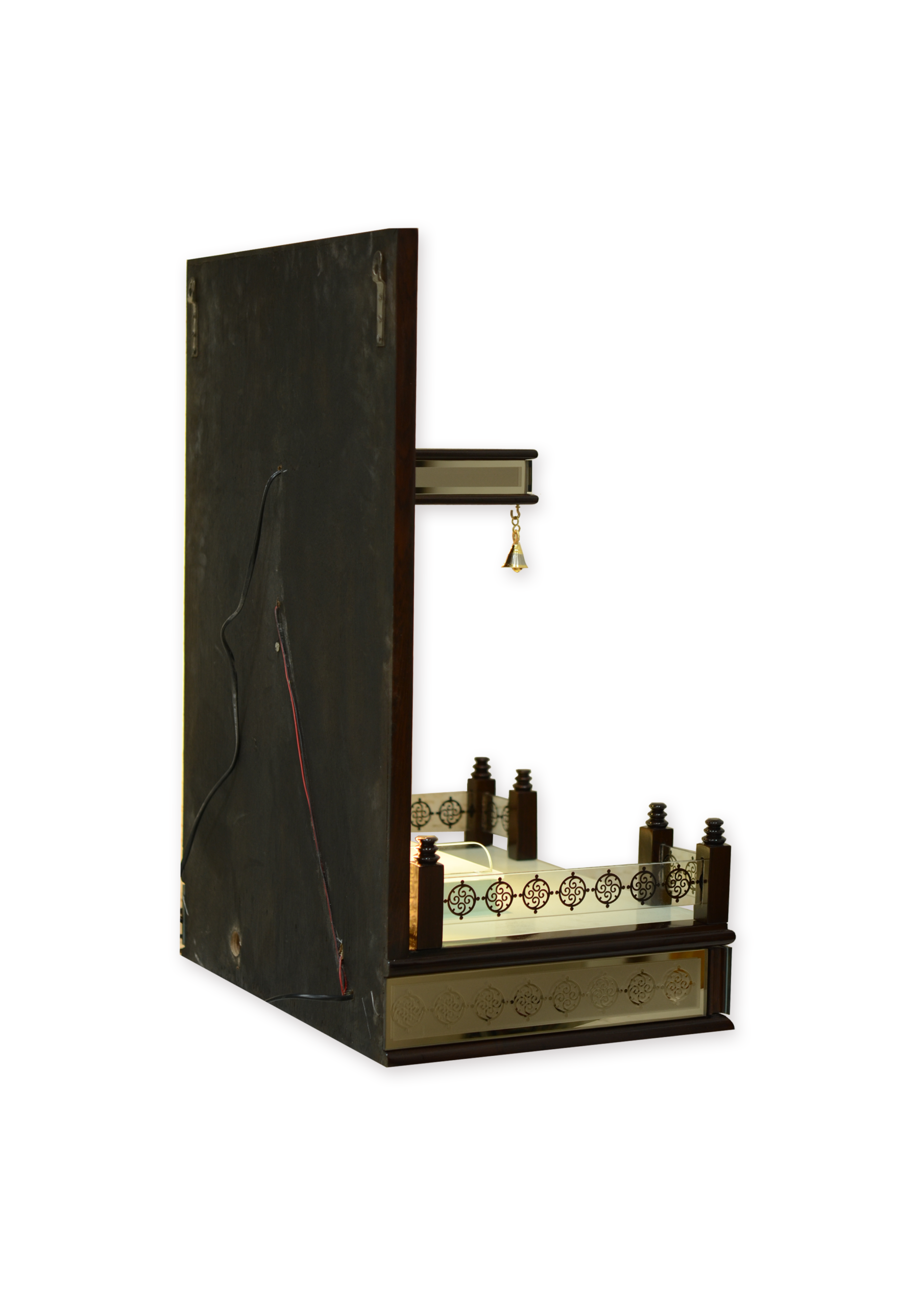 • High-Gloss Finish: The gold-toned reflective panels brighten the sanctum, making it a standout choice for those seeking a mandir for home online.