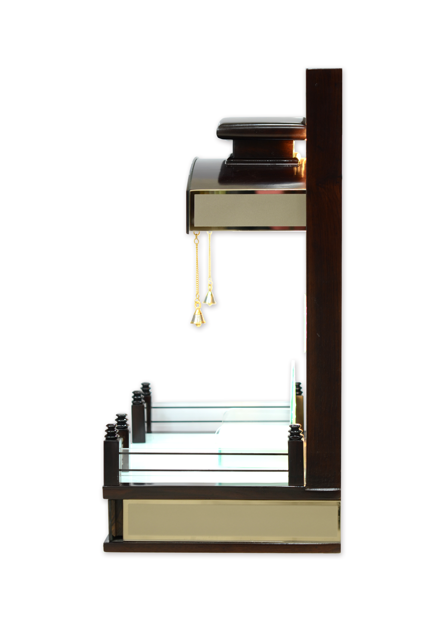 • Premium Materials: Genuine teak wood frame paired with high-gloss reflective panels that brighten any puja room design.