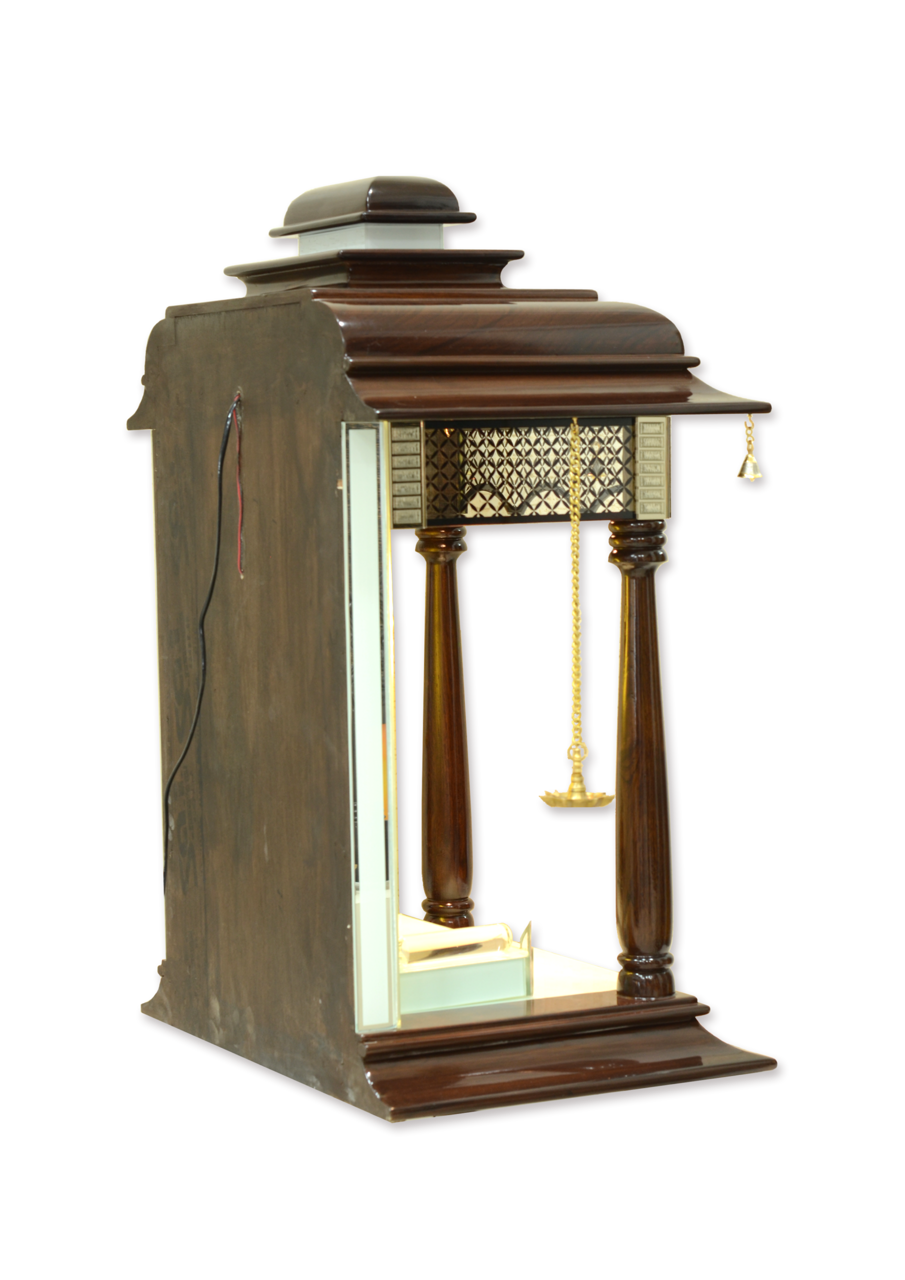 Home Poojaghar Gold Category Classic Pillar-Style Teak Wood Mandir with Hanging Diyas