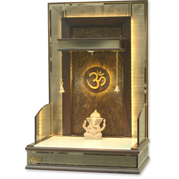 Premium Designer Teak Wood Mandir with LED Backlit Om