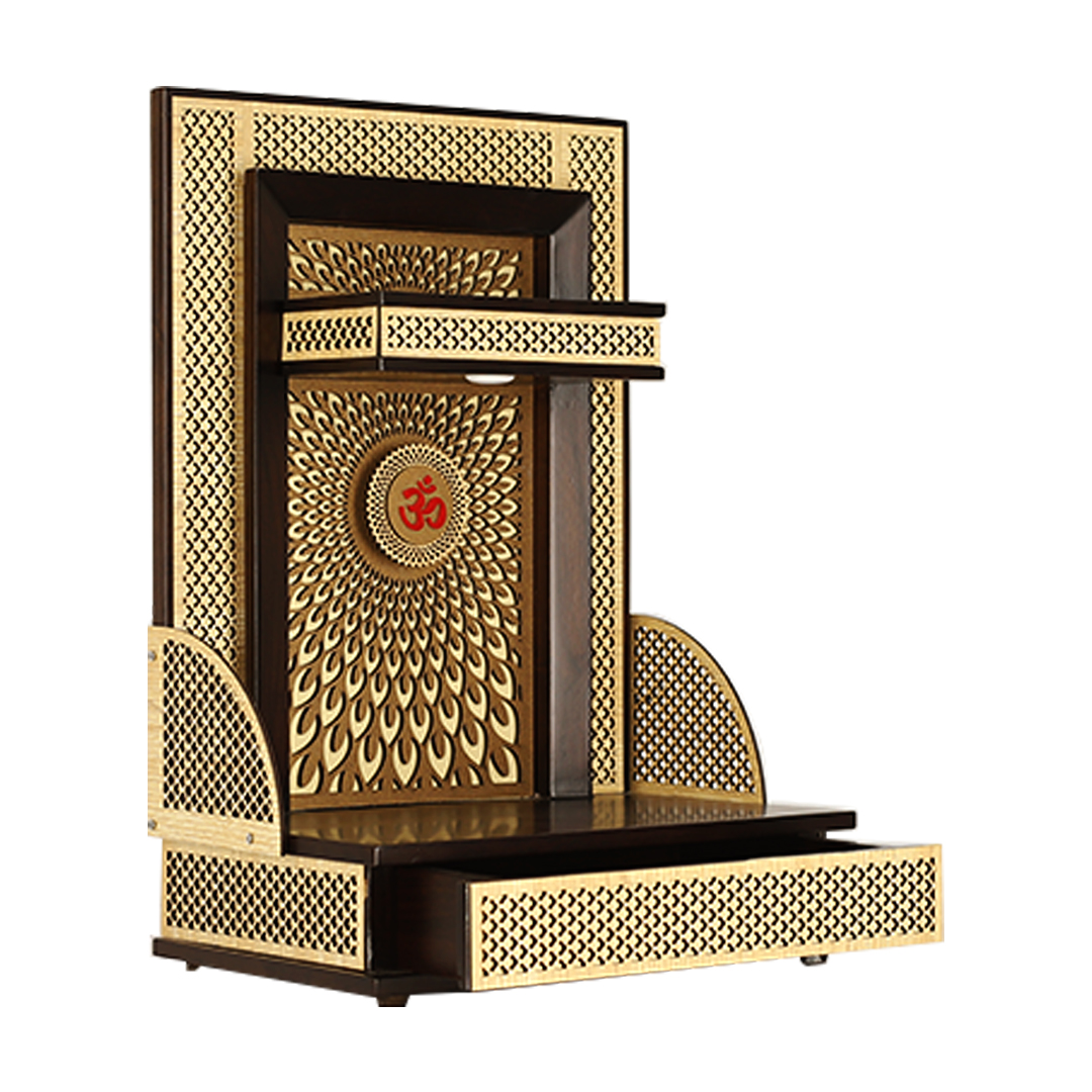 Exquisite Engineered Wood Compact Mandir for Home with Storage Drawer & LED Lighting