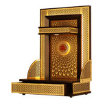 Designer Teak Wood Compact Mandir for Home – Sunburst Lattice LED Temple