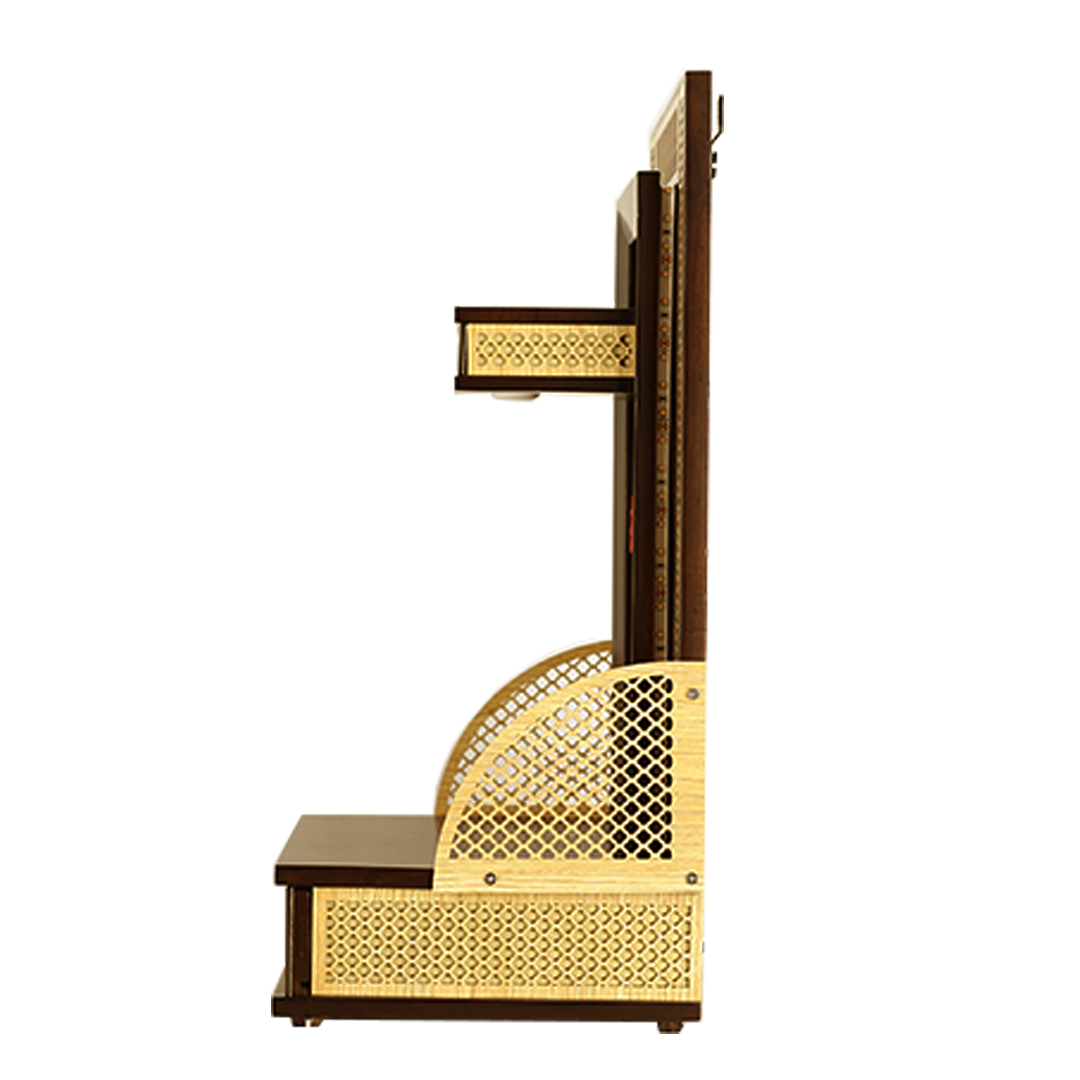 Home Wooden Mandirs Designer Teak Wood Compact Mandir for Home – Sunburst Lattice LED Temple