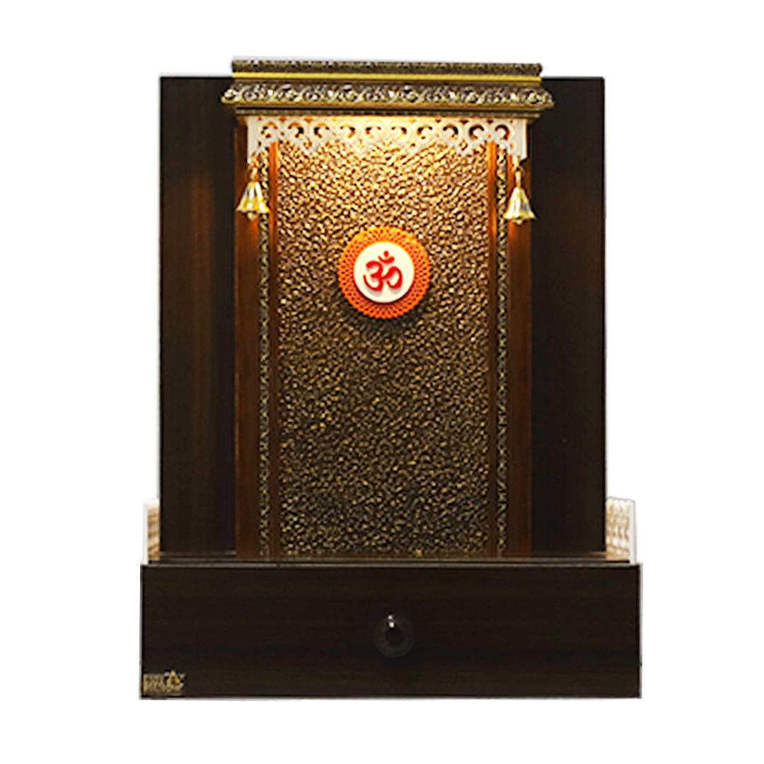 Home Poojaghar Business Category Exquisite Engineered Wood Compact Mandir for Home with Storage Drawer & LED Lighting