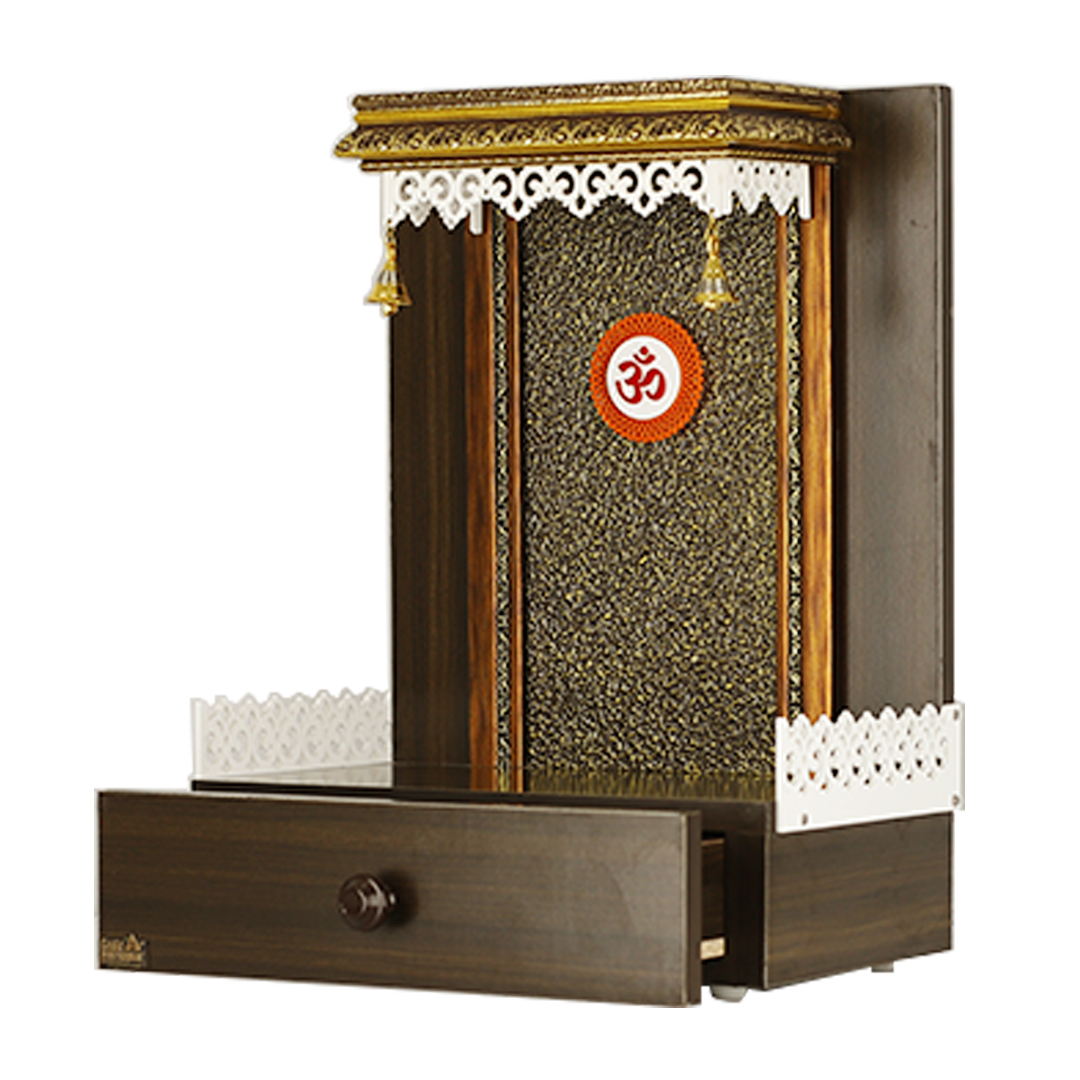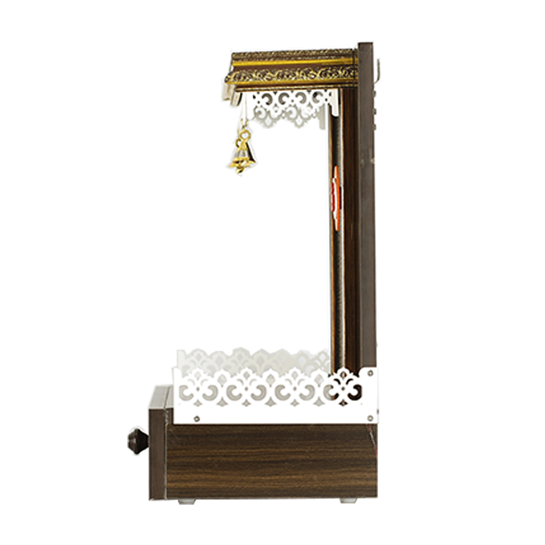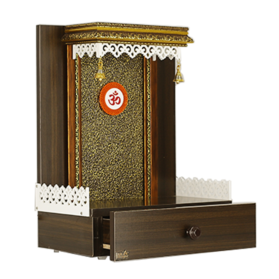 Exquisite Engineered Wood Compact Mandir for Home with Storage Drawer & LED Lighting