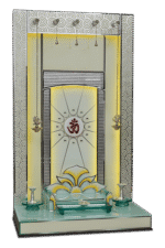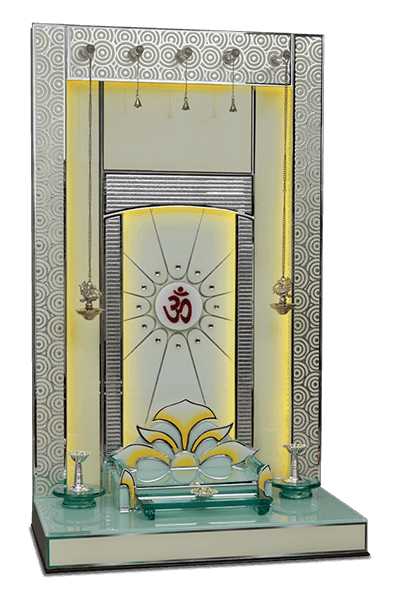 • Functional Platform: A wide white glass base with side-extension trays offers a clean and easy-to-maintain surface, making it a top choice for a mandir for home online.