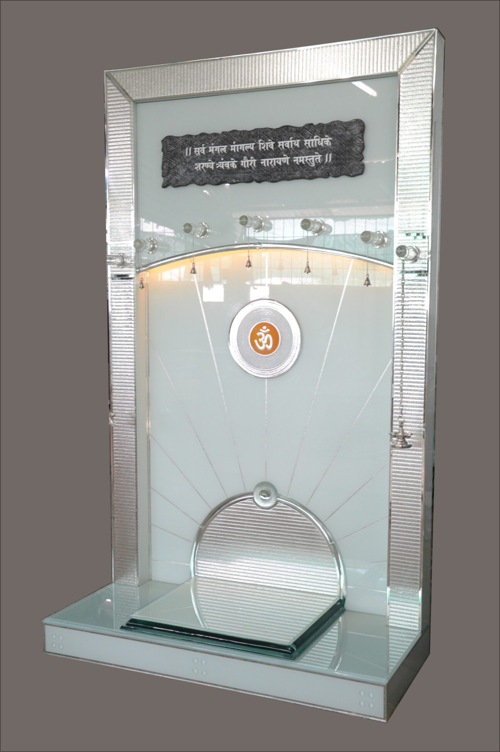 • Divine Illumination: Integrated LED lighting strips and a circular backlit “Om” provide a warm, meditative glow throughout the sanctum.