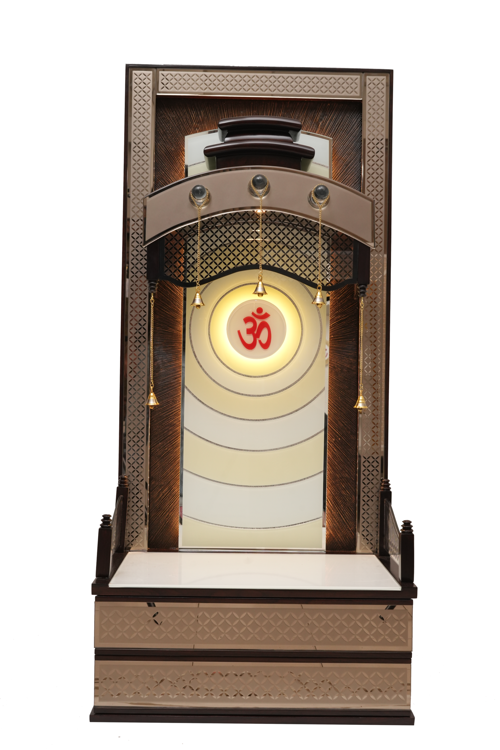 Bring home a masterpiece of spiritual art with our latest pooja mandir. This designer mandir for home is engineered for those who appreciate high-end finishes and thoughtful lighting. Built with high-grade teak wood and finished in a deep, rich walnut polish, it serves as a stunning sanctuary for daily worship.