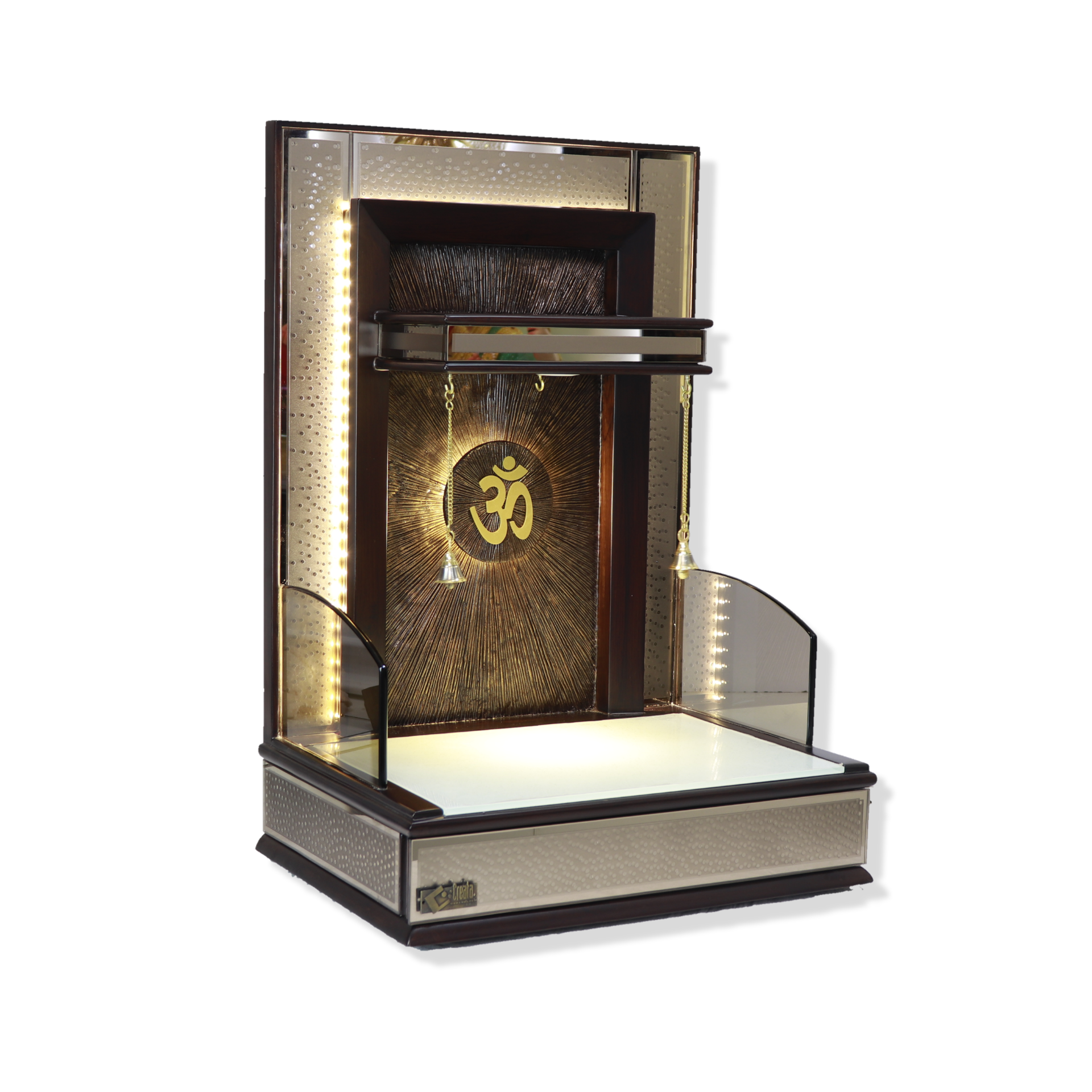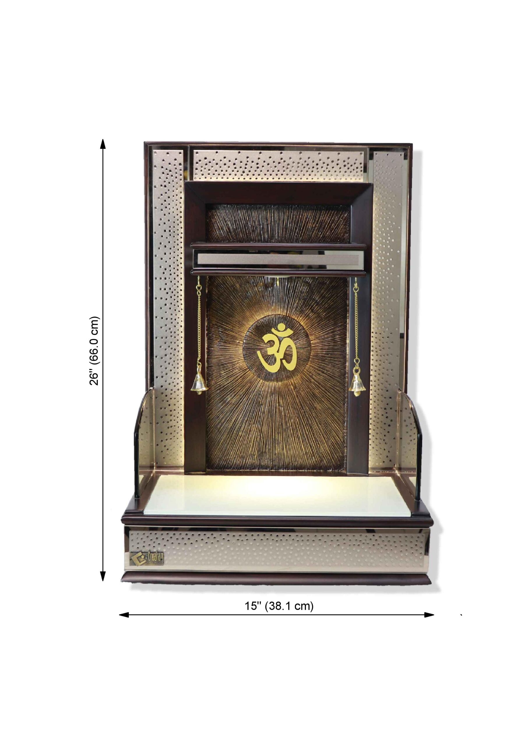 CREATA POOJAGHAR Wooden Home Temple with Stupa Concept along with LED & Back Metallic Structure