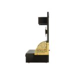 • Features: Integrated warm LED lighting, brass bell accents, and smooth-gliding storage drawers.