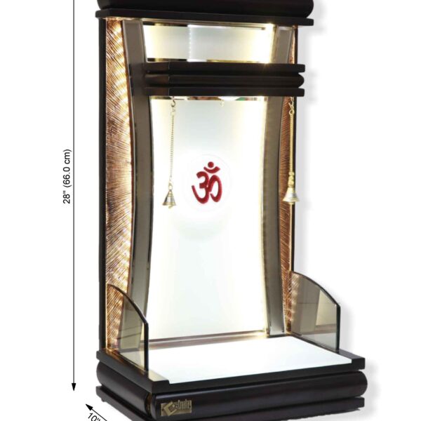 Modern Teak Wood Compact Mandir for Home with Radiant LED Backlight