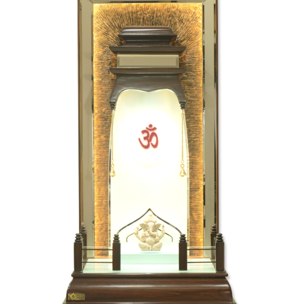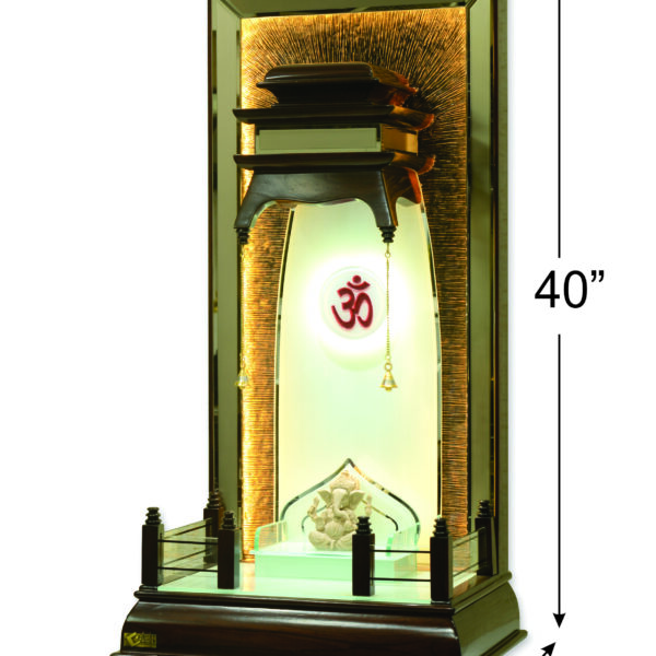 AS-Series Majestic 40-Inch Designer Teak Wood Mandir with LED Om & Glass Railing