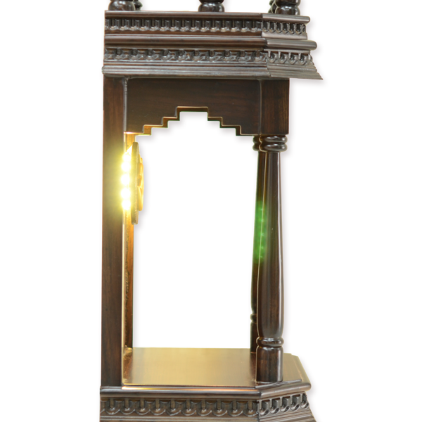 Grand Teak Wood Compact Mandir for Home – Architectural Pillar Design with Sunburst LED