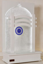 Divine Symbolism: The central backlit Ashoka Chakra serves as a peaceful focal point, offering a fresh take on traditional pooja mandir design.