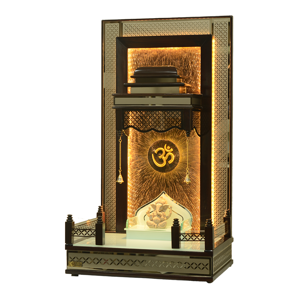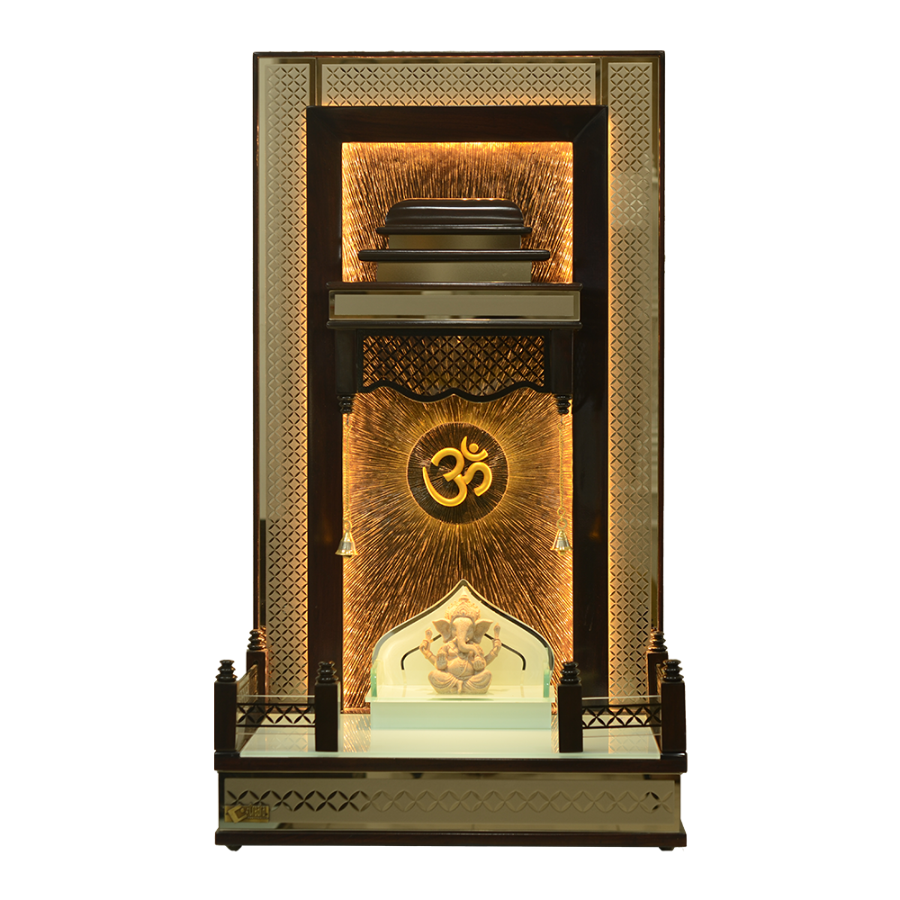 • Pristine Sanctum: A white glass platform base provides a clean, easy-to-maintain surface for your idols, making it a top-tier mandir for home online.