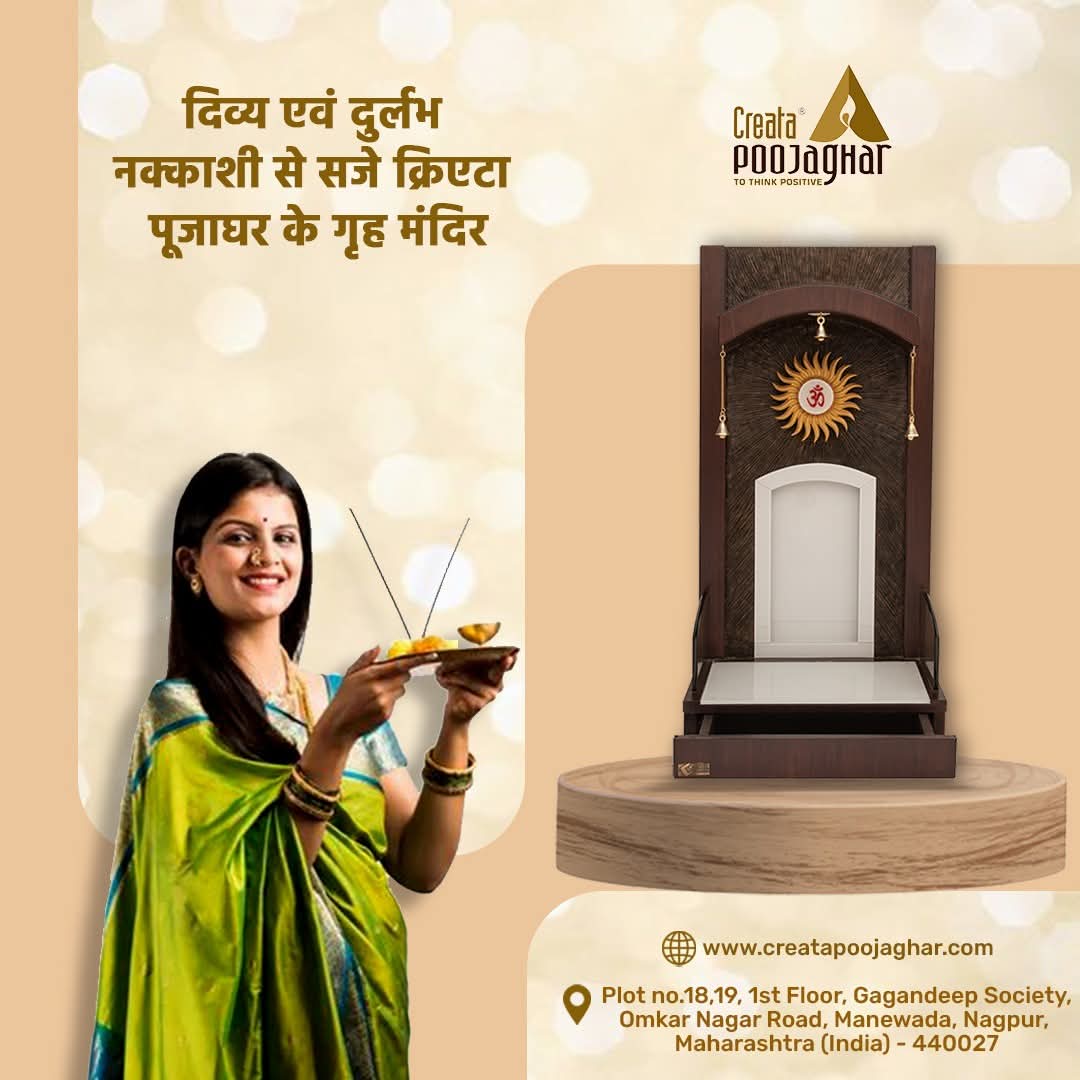 Creata PoojaGhar designs handcrafted wooden mandirs that seamlessly blend spirituality with artistry.